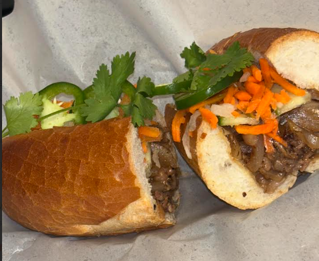 Crispy baguette is filled with homemade mayo, tender brisket with grilled onions, tangy pickled carrots and daikon, fresh cilantro, jalapeño, and our special house sauce.