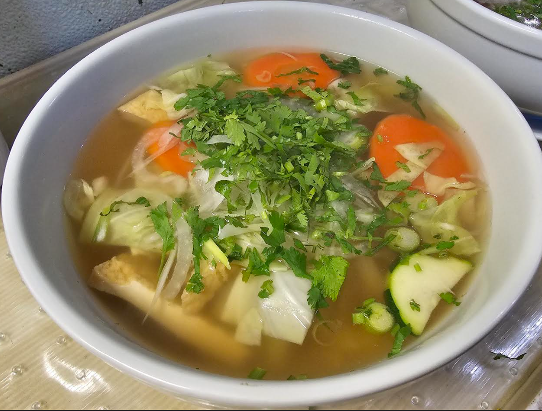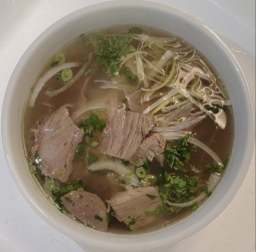 Slow-simmered aromatic broth with rice noodles, bean sprouts, onions, scallions, cilantro, jalapeños, lime, Thai basil, and your choice of protein.Vegetables, Chicken, Brisket, Beef Meatballs, Rare Steak + $1, Combo + $3.95, Shrimp + $3.95.